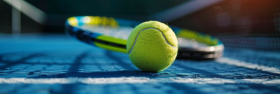 Chitrmela Tennis ball rolling on tennis court with one tennis ra ab40e8aa 89fe 44e2 a10b ed4ec7315162 1