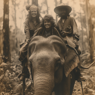 Chitrmela 1920s kodak photo of hippy backpackers riding an eleph 12b75d30 5901 4065 ad9c d797f9b12554 2