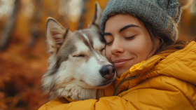 Chitrmela candid moment of a husky wearing a yellow collar cuddl 3e23a6c7 649a 4afb af73 e814d1b2bd05 3